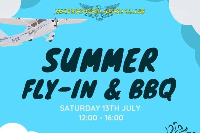 Waterford Aero Club are delighted to announce that their annual club Fly-In and BBQ will take place on July 13th from 12:00 – 16:00. All visitor landing fees have been waived for the day, courtesy of Waterford Airport. Please advise aircraft registration, type and visitor numbers to waterfordacflyin@gmail.com